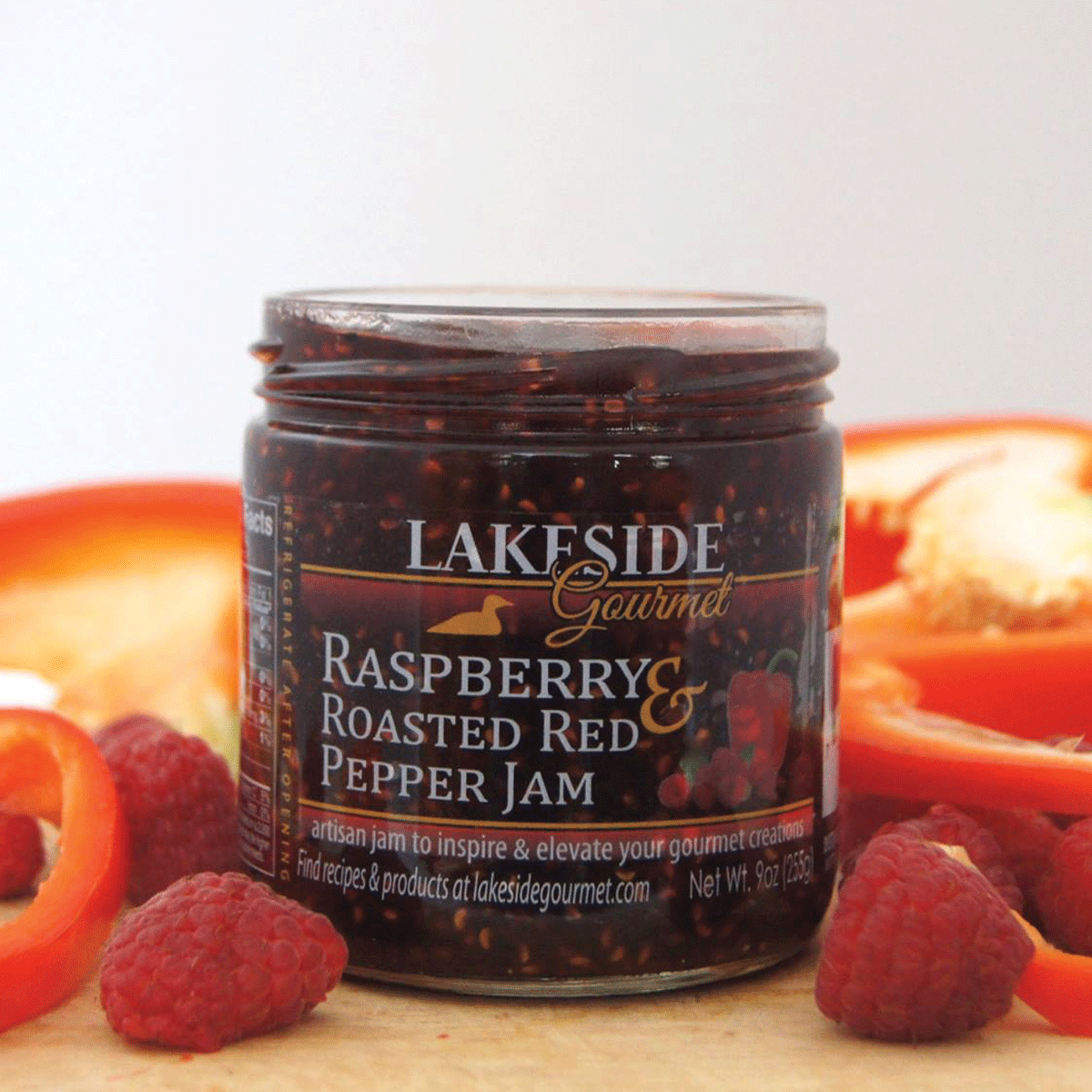 Sugar, Raspberries, Roasted Red Peppers, Water, Lemon Juice, Butter, Fruit Pectin, Citric Acid. *Contains Milk